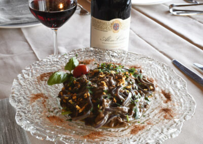 Nel corso degli anni, ha saputo conquistare il palato dei suoi clienti con una cucina in continuo sviluppo creativo e con menù in grado di soddisfare tutti i gusti, anche quelli più esigenti.